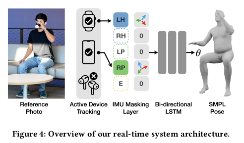 핸드폰, 시계, 이어폰 에서 얻을 수 있는 IMU 정보를 활용하여 pose estimation 진행