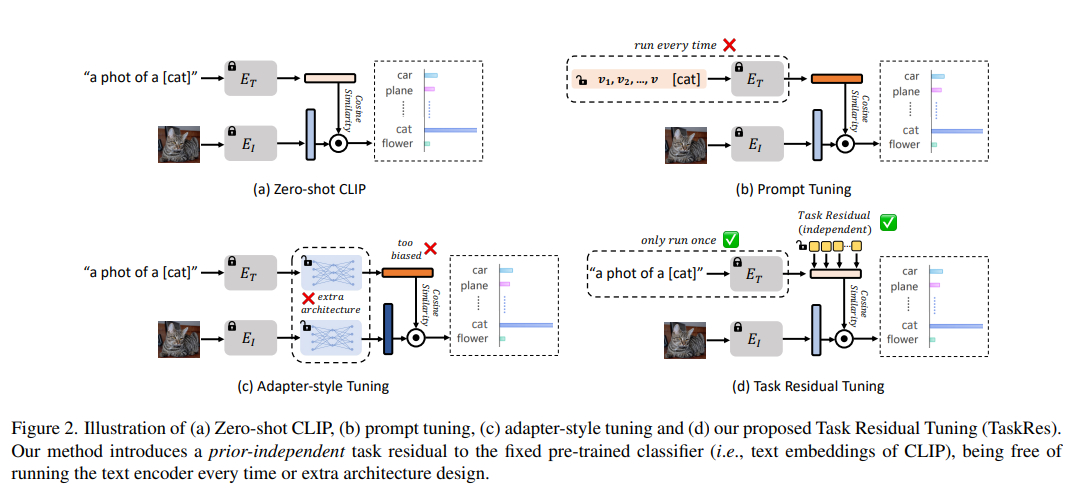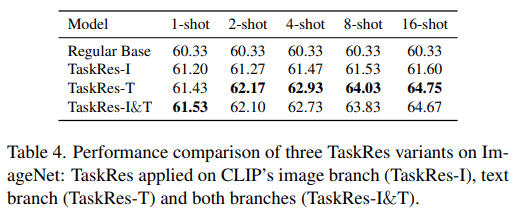 Task residual tuning을 제안 (TaskRes), 결론은 기존 CLIP과 independent한 정보를 추가하여 학습함