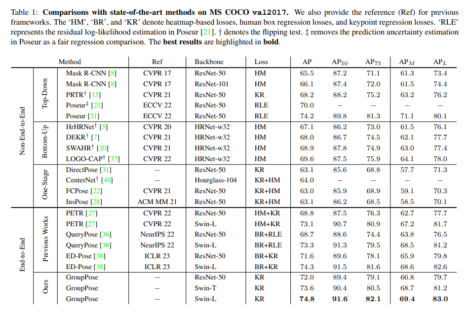 GroupPose의 경우 keypoint regression loss만 사용해도 좋은 성능을 보여준다.