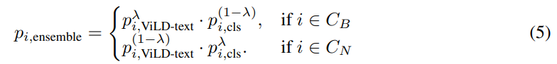 ViLD-text로 나온 prediction과 실제 CLIP에서 나온 prediction과의 ensemble을 적용해보자