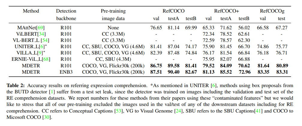 COCO, VG, Flickr30k로 pre-training 진행 이후 RefCOCO db로 fine-tuning