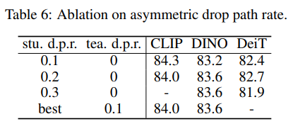drop path rate에 따른 성능 비교 (Deit에서 설명한 stochastic depth와 동일)