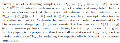 Noisy한 학습 DB와 clean한 소량의 validation set이 있다는 가정 (어떻게보면 현재 wildfire dataset과 유사한 환경)