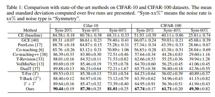 기존에 CE loss를 사용했던 noisy label 학습 방식에 제안한 방식을 적용한 경우 성능 향상을 보임