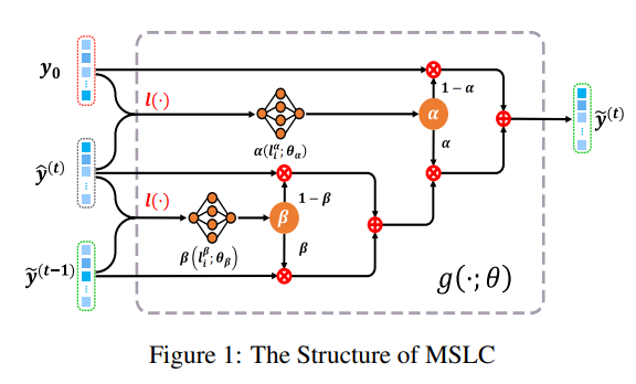 제안하는 label corrector의 경우 입력으로 noisy label, prediction result(main network), 이전 step의 label corrector 결과가 사용된다.