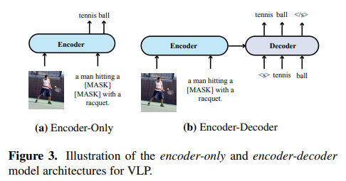 - Encoder only VLP가 encoder-decoder model 보다 성능이 좋음 (VQA, zero-shot image-text retrieval 에서)