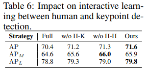 w/o H-K: internal human-key attention 제외