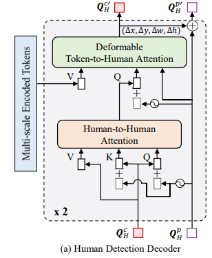 기본적으로 같은 person 안에서만 attention을 진행하게 되며, 다른 person에 대해서는 human query만 영향을 받도록 구성되어 있다.